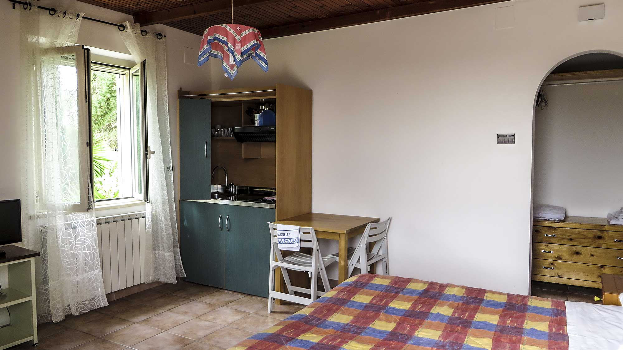 On the first floor of the former farm, La Casa di Onelo, there are 4 studio apartments of 25m2 each, surrounded by a large terrace of (180m2); Each studio consists of a bedroom, a double bed, a kitchenette and a bathroom with shower.
